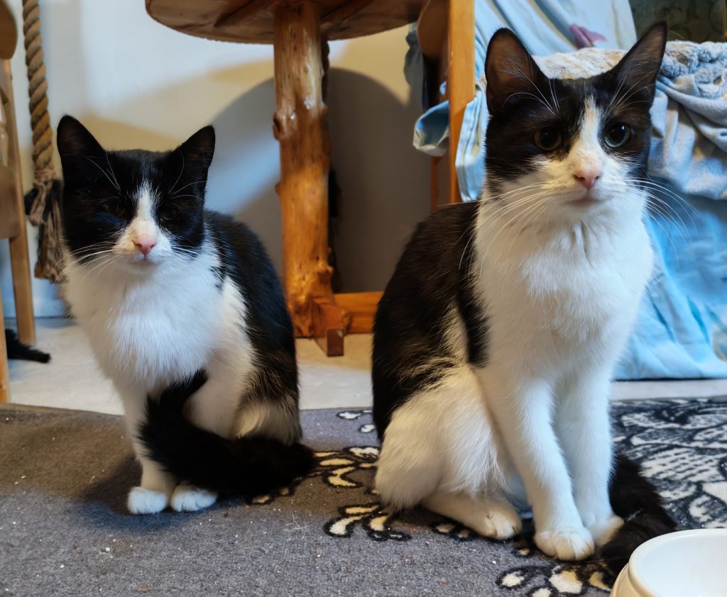 Me olemme oletettavasti siskokset ja olemme hoitaneet yhdessä molempien pentueet maailmalle. Me haluaisimme mieluiten yhteiseen kotiin, jossa meillä olisi toisistamme turvaa ja seuraa.